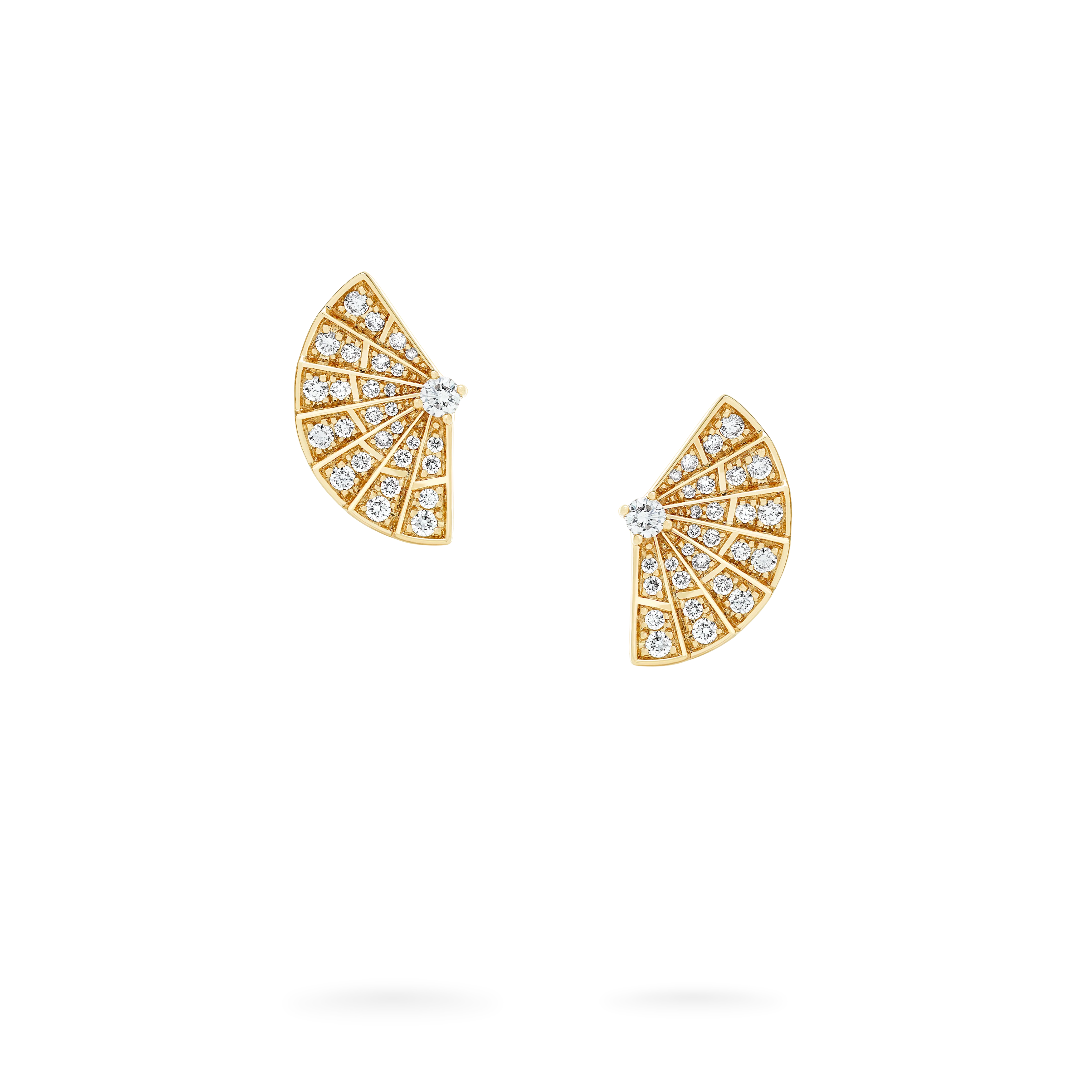 Radiating diamonds mimic the pleats of a fan in our yellow gold Fanfare Symphony Mini Icons earrings. Featuring a more stylised interpretation of the Fanfare motif, the refreshingly contemporary design is elegant and easy to wear.